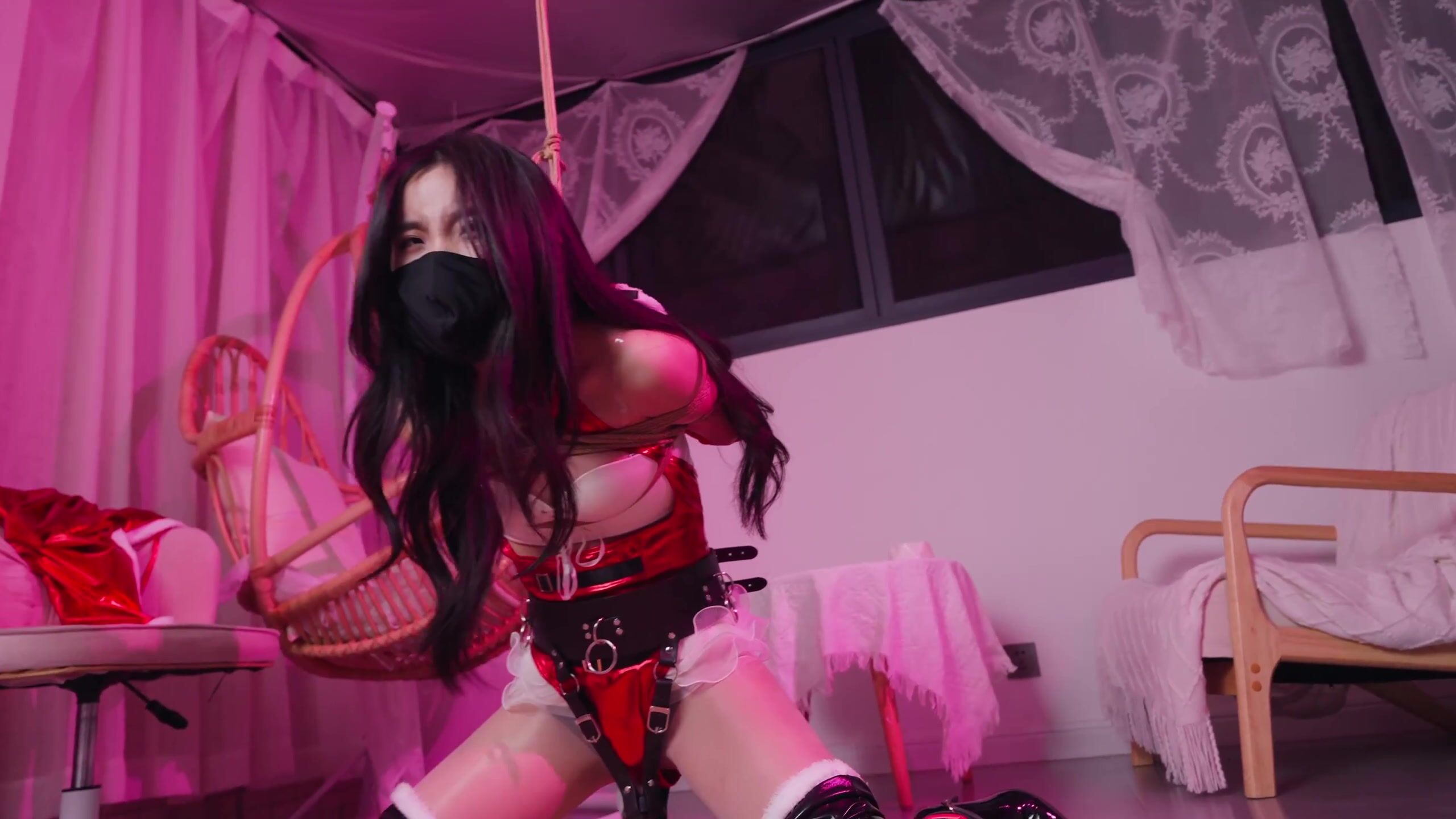 【悠米】《绑架圣诞愿望精灵》 把圣诞精灵装在麻袋里绑架回家,扔在床上绑起来玩弄,在把她吊起来用AV棒棒固定羔潮